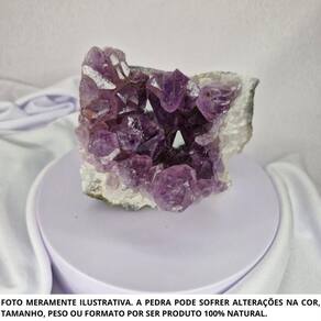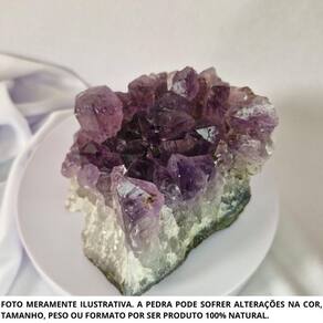 Drusa Ametista Pedra Natural Bruta 300 a 500 Gramas Proteção Drusa Ametista Pedra Natural Bruta 150 a 300 Gramas Proteção A Ametista é uma pedra natural que traz proteção ao lar, harmônia para a mente e cura para o corpo. É uma pedra com alto nível de energia vibratória por ser uma pedra com grande alcance espiritual. A Ametista tem o poder de transformar energias negativas como , tristezas e mágoas, em energias positivas. Pode ser utilizada no processo de Cura: Ativa o sistema linfático e a circulação sanguínea, combate vícios, alivia enxaquecas e a tensão. A Ametista trata a insônia e promove um sono reparador. Ela harmoniza e conecta os corpos físico, mental e emocional, ligando-os ao espiritual. Chakra: Frontal Sexto Elemento: Água Como energizar: O lítio e o manganês presentes na composição desse cristal são voláteis, por isso, ele não deve ficar exposto ao sol, pois perderá esses minerais que evaporarão. Portanto, a sua energização deve ser feita na luz do luar por no mínimo 4 horas seguidas. Feng Shui: Pode ser Utilizado como decoração na entrada da casa na função de proteção do lar contra energias negativas, na sala para motivar a concentração, memória e criatividade ou no quarto para melhorar a qualidade do sono e afastar pesadelos. Observação: Por serem pedras 100% naturais podem ter variações de coloração, tamanho e peso +/-10 gramas em relação à imagem do anúncio, entretanto, terão a mesma qualidade. Os cristais podem conter fissuras naturais, ranhuras naturais e veios naturais. Marca: Não Informado