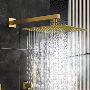 Ducha Chuveiro Dourado Com Braço 38 Cm Para Aquesedor Solar Gás ou Eletrico