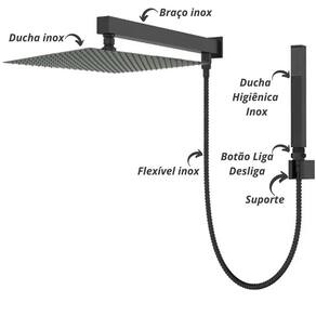 Ducha Slim Quadrado 30x30 Com Desviador Preto Fosco Black