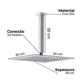 Produto em A ducha quadrada de teto cromado slim 30x30 é o produto ideal para você que busca modernidade e estilo para sua casa. É uma peça com design estiloso e uma ótima queda dágua que vai te proporcionar ótimos banhos no banheiro ou até nas áreas externas de sua casa. Por que usar o chuveiro ducha de teto slim cromado 30x30 Ela é feita completamente em inox, tendo alta durabilidade e luxuosidade, tendo praticidade e garantindo um uso muito simples. Os chuveiros inox 304 de teto slim cromado 30x30 foram desenvolvidos para trazer beleza, elegância e modernidade, e em conjunto com outras peças, permitem uma maior valorização do banheiro ou da área externa. A ducha não é elétrica, podendo ter sua água aquecida a gás ou por aquecimento solar, devido ao seu material inox, ela tem uma ótima durabilidade, e seus bicos de silicone são duráveis e proporcionam uma ótima vasão dágua. Características da ducha: Fácil instalação Pode utilizar água quente ou fria. Deve ser instalada com um sistema de aquecimento a parte. Ducha com espessura super fina e com ótimo acabamento cromado. Especificações: Ducha cromada para banho quadrada cromada inox 304 30x30 cm Braço: 25 cm Material: inox 304 Conexão: 1/2 padrão Largura: 30 cm Comprimento: 30 cm Espessura: 05 cm Articulável: dispositivo que permite ajustar ela na inclinação desejada Aquecedor compatível: aquecedor a gás ou solar Vazão: 10l/min Polegada: 8 polegadas Pressão mínima: 4 mca Pressão máxima: 32 mca Acabamento: cromado Itens inclusos: 1 chuveiro quadrado cromada inox 304 30x30 cm 1 braço em inox 304 quadrado 25 cm 1 canopla Marca: Não Informado
