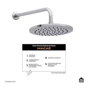 A Ducha Chuveiro Redondo de Parede Macaé - Pingoo.casa - Prata combina praticidade e conforto para o seu banho