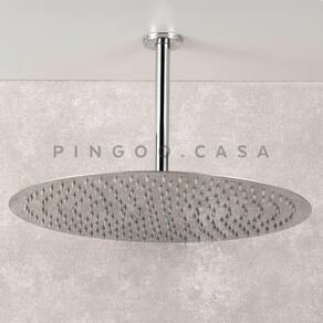Marca: Pingoo.casa Bitola: 1/2'''' Cor: Prata Acabamento: Cromado Vazão: 12 litros minuto (40 MCA) Pressão Mínima de água recomendada: 3 mca. Pressão Máxima de água Recomendada: 40 mca. Material: Ducha em aço inoxidável 304, braço e acabamento de parede em aço inoxidável 201
