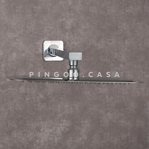 Marca: Pingoo.casa Modelo: São Luís Cor: Prata Bitola: 1/2'' Vazão: 12 litros por minuto. Pressão Mínima de água recomendada: 3 mca. Pressão Máxima de água Recomendada: 40 mca. Dimensões: 28x18cm Material: Ducha em aço inoxidável 304, braço e acabamento de parede em aço inoxidável 201