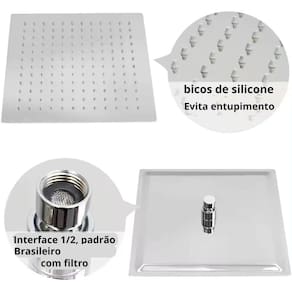 Ducha Chuveiro Slim Quadrado Metal 30X30Cm Com Braço De Teto