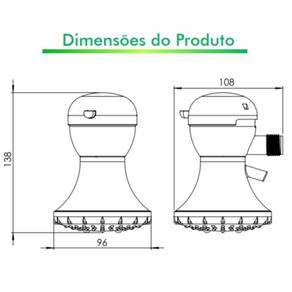 - Tipo de produto: Ducha elétrica - Potência: 5200 Watts - Voltagem: 220 Volts - Número de temperaturas: 3 - Compatibilidade: Sistemas elétricos 220 Volts - Material do espalhador: Plástico resistente - Cor: Branco