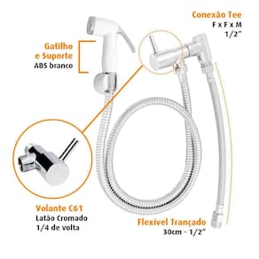 Ducha Sanitária com gatilho e suporte em ABS cromado – resistência e praticidade no acionamento.