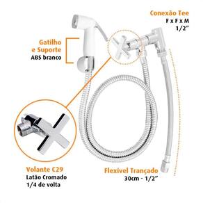 Ducha Sanitária com gatilho e suporte em ABS cromado – resistência e praticidade no acionamento.