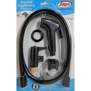 Ducha Higiênica Japi Preto ABS Flexível 1,2m 1/4 de VoltaDucha higiênica confeccionada em ABS, com registro com mecanismo de vedação cerâmico 1/4 de volta.Produto Novo, original, no blisterJapi, a escolha inteligente - Acionamento prático e suave- Economia de água- Alta durabilidade- Sistema MVC (Mecanismo de Vedação Cerâmico)Especificações:Tipo: Ducha Higiênica PlásticaMarca: JapiModelo: DHP (Ducha Higiênica Plástica Branca DN15)Comprimento do Flexível: 1,2mMecanismo Cerâmico: 1/4 de voltaConexão de Entrada: DN15, Rosca BSP 1/2Cor: PretoObservação: Produto novo, original, lacrado, no blister, manual e instruções de uso no verso da embalagem.Dimensões da Embalagem: Altura 4cm x Largura 21cm x Comprimento 33cmPeso: 0,500KgGarantia: 10 anos com o fabricanteO que Acompanha a Embalagem: 1x Mangueira Flexível, 1x Gatilho, 1x Suporte para o Gatilho, 2x Buchas, 2x Parafusos, 1x Registro, 1x Canopla.