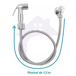 Ducha higiênica abs cromada acionamento 1/4v Ducha higiênica abs cromado acionamento 1/4 de volta Ducha para instalação na parede A ducha higiênica premium abs cromado acionamento 1/4 de volta o flexível metal é uma das características que garante qualidade e durabilidade para o produto, com seu gatilho em abs cromado plástico de engenharia de grande resistência, além da mangueira flexível metal cromado de longo alcance com 120 centímetros de comprimento e todo seu formato arredondado trás inovação e requinte para sua casa Seu acionamento em alavanca combinado ao mecanismo 1/4 de volta é muito eficaz. O mecanismo 1/4 de volta é o que há de mais moderno em mecanismo para torneiras, sendo o que mais tem vida útil e o que menos apresenta defeitos ao decorrer do uso, economiza água trás conforto e praticidade.