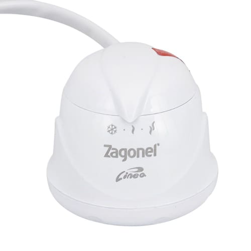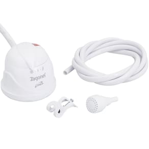 Características Técnicas: Potência: 5.500 W. Tensão: 220 V. Quantidade de temperaturas: 3 (modelo multitemperatura). Pressão mínima de funcionamento: ~1 m.c.a (metros de coluna d’água) para acionamento. Indicação de local de instalação: Fixação em parede com cano (sem “cano” incluído) para banho completo. Cor/acabamento: Branco. Marca: Zagonel. Uso indicado: Banheiros residenciais onde se deseja banho quente com ajuste de temperatura e confiabilidade.