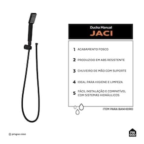 A Ducha Manual Jaci Pingoo.casa é excelente para proporcionar praticidade e conforto no banho por ser um chuveiro de mão, que permite maior flexibilidade no direcionamento do jato de água, tornando o uso versátil e facilitando tarefas como higienização pessoal e limpeza do box, além de conter um design moderno que se se adapta a diferentes estilos de banheiro.