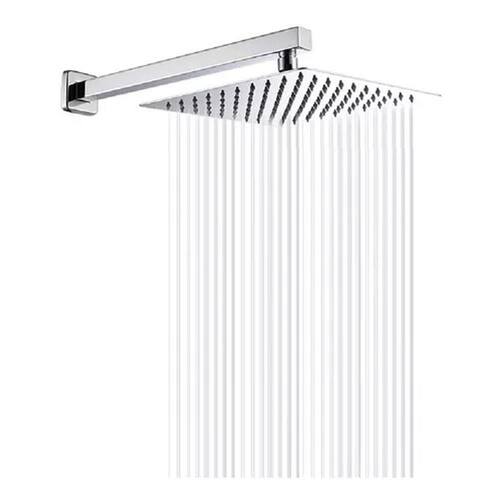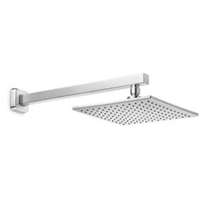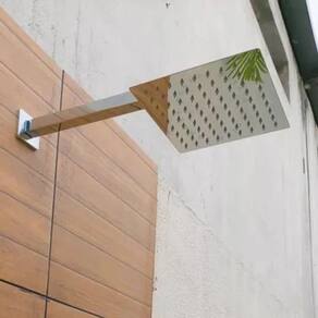 Ducha articulável medindo 20cmx 20cm e braço de chuveiro quadrado de 30 cm, sendo a ducha fabricada em liga de cobre e o braço em alumínio ambos com acabamento Cromado: durabilidade, resistência e conservação do acabamento por muito mais tempo.