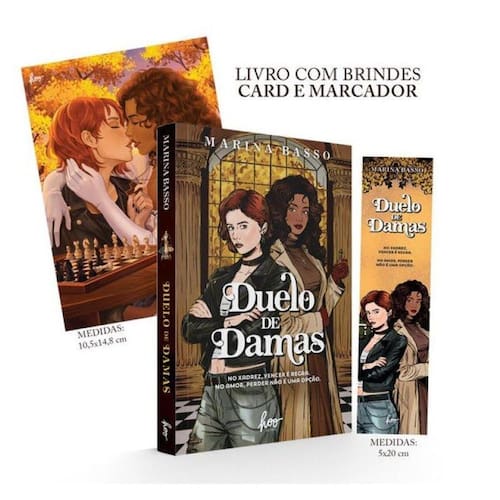 Da autora best-seller e vencedora do prêmio Wattys, Duelo de damas acompanha a história de duas enxadristas rivais em um romance sáfico nostálgico e intenso que atravessa as décadas de 1970, 1980 e 1990. No primeiro campeonato de xadrez que disputaram, Adeline e Teresa descobriram que o que as unia ia muito além do tabuleiro. No segundo, mal se reconheceram — sete anos haviam passado e tudo em suas vidas estava diferente. Agora, adultas e em lados opostos mais uma vez, as enxadristas precisam enfrentar não só uma à outra, mas também tudo o que ficou mal resolvido entre elas: o que foi dito, o que foi silenciado e o que jamais deixou de existir. Entre jogadas arriscadas e flertes que desafiam qualquer estratégia, um único campeonato pode redefinir o que significa vencer… e o que significa amar. INCLUI CONTEÚDO ADULTO.   Sobre a autora: Marina Basso nasceu em 1997 e ainda sonha com as mesmas coisas que sonhava quando criança. É formada em Letras pela Universidade Federal de Santa Catarina (UFSC), mora em Florianópolis/SC e escreve histórias agridoces com toques de romance, esperança e (ocasionalmente) magia. Quando não está escrevendo (quase nunca), pode ser encontrada lendo fanfics, passeando com sua cachorra ou jogando videogame.