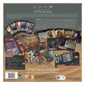 Uprising é uma sequência independente que amplia a mistura de construção de baralho e alocação de trabalhadores presente em Duna: Imperium. Continue a equilibrar poderio militar com inriga política, portando novas ferramentas em busca da vitória. Espiões apoiarão seus planos. Contratos vitais expandirão seus recursos. Ou aprenda os costumes Fremen e monte os poderosos vermes da areia na batalha! Além disso, um novo modo para seis jogadores coloca duas equipes uma contra a outra na maior batalha já vista! As escolhas são suas. O Imperium aguarda!