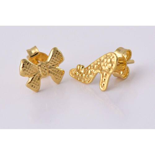 Encantador como um conto de fadas. Essa dupla de brincos vem composto por uma folhagem em ouro 18k e os brincos com um design elegante e delicado de um sapatinho e um laço para que você mostre sua essência feminina. Experimente o novo e complete sua coleção pessoal de brincos.