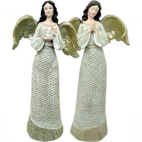 CORES: Branco e Dourado; MATERIAL: Resina; MEDIDAS ANJO 1: Altura 38cm X Largura 18cm X Comprimento 12cm; MEDIDAS ANJO 2: Altura 38cm X Largura 21cm X Comprimento 10cm; CONTEÚDO DA EMBALAGEM: