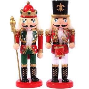 Dupla Boneco Decorativo Madeira Quebra Nozes Natalino 20cm -