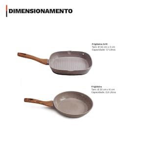 Distribuído por feheros shop Dupla de frigideiras premium revestimento cerâmico antiaderente fundo triplo para indução Atenção A dupla de frigideiras premium com revestimento cerâmico antiaderente e fundo triplo para indução é perfeita para quem busca versatilidade e eficiência no preparo das refeições. Composta por uma frigideira de 20cm e uma frigideira grill quadrada de 24cm, o conjunto atende a diferentes necessidades na cozinha, desde preparos rápidos até grelhados especiais com acabamento . Compatíveis com todos os tipos de fogão, incluindo indução, garantem um cozimento rápido, uniforme e saudável com menos uso de óleo ou gordura. - panela premium com certificação inmetro nível a . - não deixe a chama do fogão pegar nas laterais das panelas, isso pode causar danos no revestimento. - leia atentamente a descrição e siga o passo a passo que o fabricante recomenda. Informações do produto As frigideiras são fabricadas em alumínio de alta qualidade com revestimento cerâmico antiaderente, que impede que os alimentos grudem e facilita tanto o preparo quanto a limpeza. O fundo triplo distribui o calor de forma uniforme, otimizando o tempo de cozimento e preservando o sabor dos alimentos. O cabo de baquelite com revestimento soft touch proporciona segurança térmica e conforto no manuseio. A frigideira grill quadrada é ideal para grelhados como carnes, frangos, peixes e vegetais, garantindo as tradicionais marcas de grelha e uma apresentação digna de restaurante. Especificações técnicas do produto - dupla composta por 1 frigideira de 20cm e 1 frigideira grill quadrada de 24cm - revestimento cerâmico antiaderente de alta qualidade, livre de pfoa e ptfe - possui 2 camadas de revestimento cerâmico e 1 camada resistente a alta temperatura - compatíveis com fogões a gás, elétricos, vitrocerâmicos e por indução - espessura de 4mm que proporciona resistência e robustez - cabos em baquelite com revestimento soft touch para conforto e segurança - design moderno e sofisticado que valoriza qualquer ambiente de cozinha - certificação inmetro nível a garantindo segurança e eficiência no uso Ficha técnica do produto Frigideira 20cm - material: alumínio com revestimento cerâmico - diâmetro: 20cm - espessura: 4mm - capacidade: 905ml - altura: 6cm - cabo: baquelite soft touch - cor: grafito Frigideira grill quadrada 24cm - material: alumínio com revestimento cerâmico - largura: 24cm - espessura: 4mm - capacidade: 1,7 litros - altura: 3cm - cabo: baquelite soft touch - cor: grafito Antes e depois do primeiro uso - antes do primeiro uso, lave todas as frigideiras com água morna, detergente neutro e esponja macia. Seque bem antes de utilizar. É recomendada a cura antes do primeiro uso. Aplique uma fina camada de óleo, leve ao fogo baixo por 2 minutos, desligue, aguarde esfriar e lave novamente antes de usar. - após o uso, lave com esponja macia e detergente neutro. Evite utensílios metálicos e produtos abrasivos para preservar o revestimento cerâmico. Aguarde o utensílio esfriar naturalmente antes de lavar para evitar choques térmicos. Itens inclusos no pacote - 1 frigideira 20cm revestimento cerâmico antiaderente fundo triplo indução - 1 frigideira grill quadrada 24cm revestimento cerâmico antiaderente fundo triplo indução Todas as fotos são reais dos produtos. Qualquer dúvida estamos à disposição. Dúvidas frequentes 01 - as frigideiras são compatíveis com fogão de indução Sim. Ambas possuem fundo triplo especial compatível com todos os tipos de fogão, incluindo indução. 02 - os produtos possuem Sim. de 3 meses contra defeitos de fabricação. 04 - como acompanho o envio do meu pedido Marca: Não Informado Ean: 7908965803687