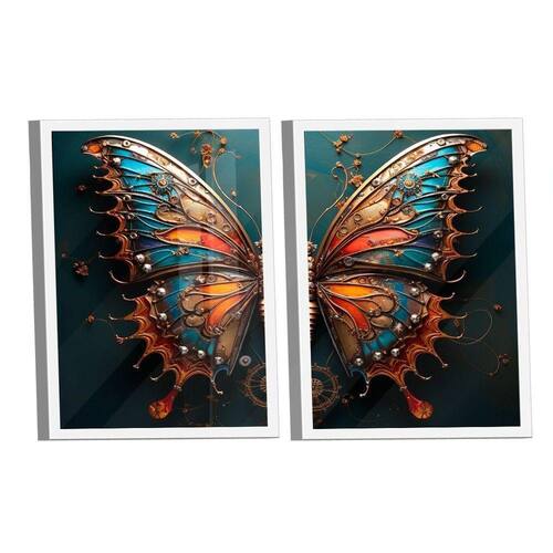 Dupla De Quadros Borboleta Dark -- Br Artes Dupla de Quadros Borboleta Dark -- BR ARTES Moldura Branca e Vidro - Gigante 180x105 - - Qualidade Premium (padrão museu)