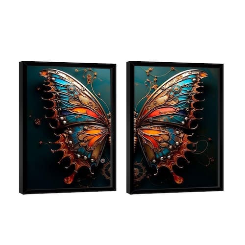 Dupla De Quadros Borboleta Dark -- Br Artes Dupla de Quadros Borboleta Dark -- BR ARTES Moldura Preta - Pequeno 60x40 - - Qualidade Premium (padrão museu)