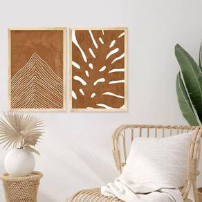 Dupla de Quadros Decorativos Boho Abstrato Marrom