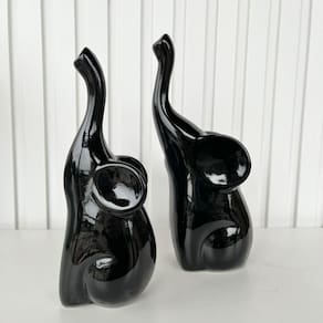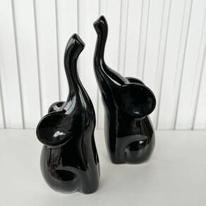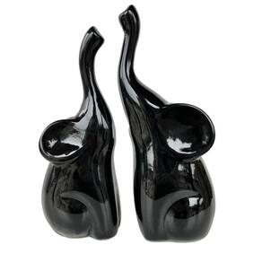 Decoração rack estante dupla escultura estátua animal elefante preto grande/pequeno mãe e filho com tromba para cima de cerâmica enfeite para sala.