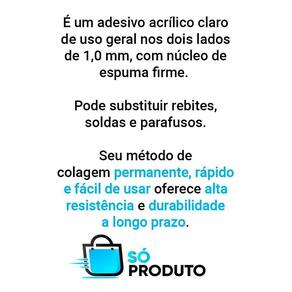 Detalhes É especificamente projetada para oferecer boa adesão em metais, vidros e plásticos, como policarbonato e acrílico. Sendo um adesivo acrílico claro de uso geral nos dois lados de 1,0 mm, com núcleo de espuma firme. Pode substituir rebites, soldas e parafusos.