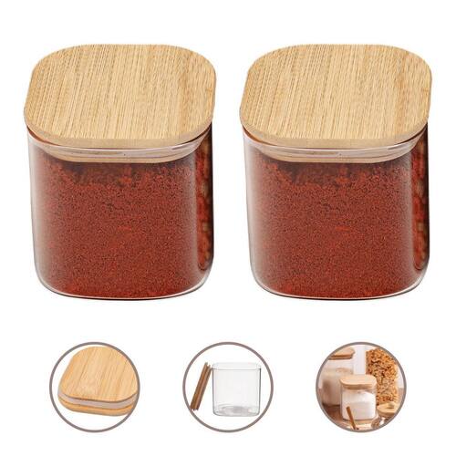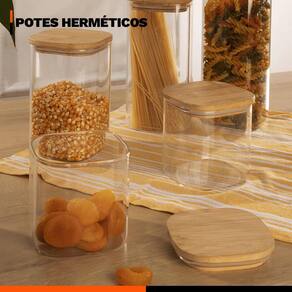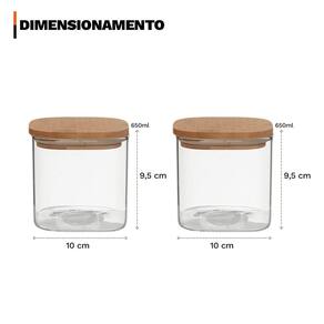 - 02 potes herméticos quadrados 650ml em vidro borossilicato com tampa de bambu