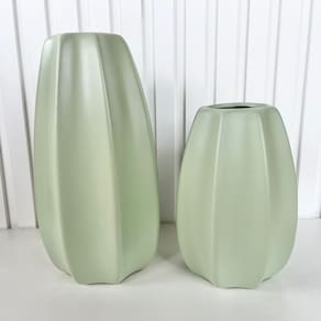 Decoração sala rack aparador dupla vaso centro de mesa grande e médio de cerâmica moderno trabalhado alto relevo na cor verde menta decoração luxo.