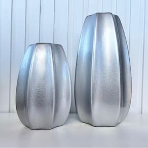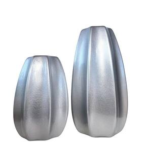 Decoração sala rack aparador dupla vaso centro de mesa grande e médio de cerâmica moderno trabalhado alto relevo na cor prateada decoração luxo.