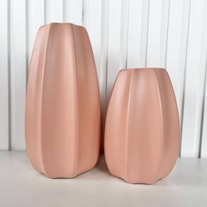Decoração sala rack aparador dupla vaso centro de mesa grande e médio de cerâmica moderno trabalhado alto relevo na cor rosa fosco decoração luxo.