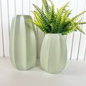 Cor: Verde Menta. Material: Cerâmica. Tamanho dos vasos: Grande e Médio.