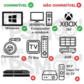 atenção - não é compatível com aparelhos que tenha o bloqueio de vídeo hdcp exemplo: ps4, chromecast, de canais e dvr de câmeras - não funciona como switch para abertura de mais portas hdmi - duplica a imagem, não serve como extensor - não serve para conectar dois aparelhos a uma única tv