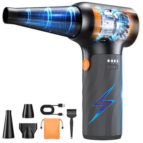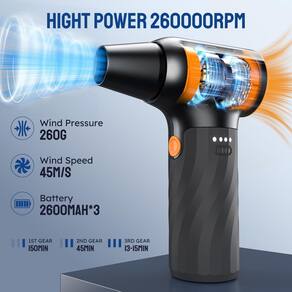 O espanador de ar comprimido tem um motor potente com uma velocidade máxima de 260.000 rpm, 3 configurações de fluxo de ar ajustáveis e uma pressão de vento de mais de 350 g para o espanador de ar elétrico oferece força de sopro super forte, que pode proporcionar uma limpeza eficaz de acordo com diferentes tarefas e manter o desempenho ideal - Potente motor sem escovas: o espanador de ar comprimido pode proporcionar velocidades incríveis de até 260.000 rpm, gerando uma velocidade máxima do vento de 45 m/s e uma pressão de vento ultra-forte de 260 g. O espanador de ar elétrico pode efetivamente remover poeira e detritos, e as 3 configurações de velocidade ajustáveis podem se adaptar facilmente a várias tarefas de limpeza - Ferramenta de limpeza multifuncional: o espanador de ar tem 3 bicos, 1 escova e um saco de armazenamento. O espanador de ar é adequado para limpar teclados, hosts de computador, saídas de ar condicionado, lâminas de janelas de carros, espelhos retrovisores, migalhas de sofá, secagem de pelos de animais de estimação, churrasqueira, inflar, soprar neve, atuar como um ventilador para esfriar e tornou-se um item essencial em muitos cenários - Design mini portátil: O espanador de ar comprimido pesa apenas 500 g, é leve e pode ser facilmente colocado em um bolso. Pode substituir latas de ar descartáveis, é econômico, ecológico, durável e reutilizável - Carregamento rápido: o espanador de ar comprimido suporta carregamento tipo C, e leva apenas 3 horas para carregar totalmente. O espanador de ar elétrico pode fornecer até 150 minutos de tempo de operação na primeira marcha. Para garantir o melhor desempenho do espanador de ar elétrico, carregue totalmente a bateria antes de usar - Proteção inteligente de alta temperatura: a alça de silicone líquido do espanador de ar comprimido tem proteção contra superaquecimento e a temperatura aplicável é de -10 °C a +45 ?. É fácil de operar e pode ser ligado e desligado pressionando por 3 segundos - Lembrete: não opere o espanador de ar durante o carregamento para evitar curto-circuitos. Não é à prova d'água. O espanador de ar comprimido integra limpeza eficiente, design portátil e proteção de segurança inteligente e é o seu assistente de limpeza ideal!