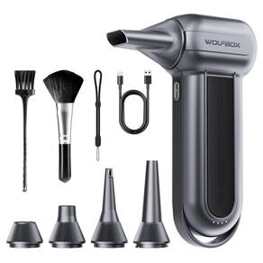 O espanador de ar comprimido WOLFBOX MegaFlow100, uma ferramenta de sopro de ar potente, durável e econômica, é uma solução ideal para limpeza eficiente e uso multiuso. Tem motor sem escovas com bateria de longa duração, vem com vários acessórios que permitem que você o use em diferentes cenários. - Ventilador turbo superpotente: o espanador de ar elétrico WOLFBOX MegaFlow100 atinge velocidades de até 150.000 RPM, proporcionando uma velocidade máxima do vento de 45 m/s. Isso permite que ele limpe efetivamente poeira e detritos. O soprador de pó também possui 3 ajustes de velocidade ajustáveis para atender a várias necessidades de limpeza. - Ampla aplicação: o espanador de ar elétrico WOLFBOX vem com 5 bocais e 2 escovas, tornando-o adequado para uma variedade de cenas, como computador, teclados ou outros dispositivos eletrônicos. Além de limpar a casa e espanador de carro, também serve bem para atividades ao ar livre, como inflar e incêndios ao ar livre. - Carregamento rápido de 2,5 horas: o espanador de ar elétrico WOLFBOX suporta cabo tipo C e pode ser totalmente carregado em 2,5 horas. Uma vez totalmente carregado, pode usar até 100 minutos na primeira marcha. Ele também oferece 4 métodos de carregamento para atender aos seus requisitos imediatos de carregamento, mesmo quando você estiver ao ar livre. - Portátil e portátil: Pesando apenas 300 g, o espanador de ar elétrico WOLFBOX é compacto e fácil de transportar. Pode ser convenientemente preso à sua mão usando o cordão incluído, tornando-o ideal para uso interno e externo. Também é adequado para viajar e acampar. - Econômico e reutilizável: o espanador de ar WOLFBOX é feito de materiais duráveis e tem uma longa vida útil da bateria. Ao contrário de latas de ar comprimido de uso único, o espanador de ar pode ser utilizado mais de 500 vezes após uma carga completa, tornando-o econômico enquanto atualiza sua experiência de limpeza. - 24 meses e suporte: o espanador de ar comprimido WOLFBOX MegaFlow100 vem com uma garantia de 24 meses e atendimento ao cliente 24 horas por dia, 7 dias por semana. Durante esse período, resolveremos quaisquer problemas relacionados ao produto, instalação ou uso para você.