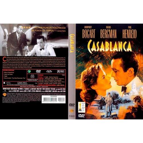 Dvd Casablanca Humphrey Bogart Ingrid Bergman Áudio : Português e Inglês 2.0 Legenda : Português Casablanca: fácil para entrar, mas muito difícil para sair, especialmente se o seu nome estiver na lista dos mais procurados pelos Nazistas. No topo desta lista está o líder da resistência Tcheca, Victor Lazslo, cuja única esperança é Rick Blaine, um americano cínico que não arrisca seu pescoço por ninguém... Especialmente pela mulher de Victor, Ilsa, sua ex-amante que partiu seu coração. Então, quando Ilsa oferece a si mesma em troca de transporte seguro para que Lazslo deixe o país, o amargo Rick deve decidir o que é mais importante - sua própria felicidade ou as incontáveis vidas que estão em jogo.