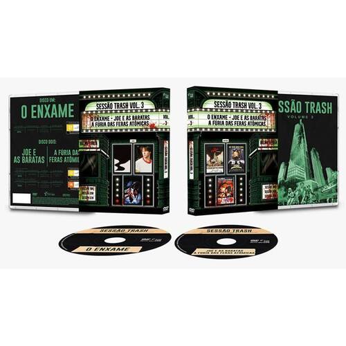 DVD Duplo com 3 filmes: O Enxame, Joe e as Baratas, A Fúria das Feras Atômicas. Duração total: 322 minutos. Áudio em inglês e português para O Enxame e Joe e as Baratas. Áudio em inglês para A Fúria das Feras Atômicas. Legendas em português. Embalagem Amaray Duplo com encarte luva de colecionador.Demonstração 360º