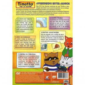 Dvd Timothy Vai à Escola - Aprendendo Entre Amigos A série Timothy vai à escola , baseada no trabalho da escritora e ilustradora Rosemary Wells, retrata as primeiras experiências das crianças no Jardim de Infância. De forma lúdica e atraente, prepara os pequenos para o convívio escolar. Este DVD traz diversas aventuras em que Timothy e seus colegas descobrem que é possível aprender com os amigos. Brincadeiras divertidas e soluções de diferenças revelam que a amizade é uma troca. Episódios: