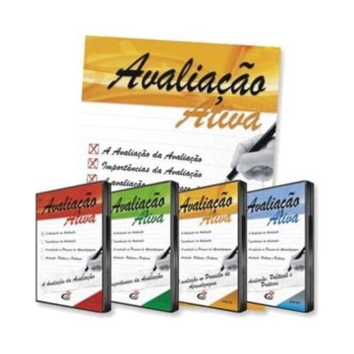 DVDS Avaliação Ativa Editora Cedic composto por 04 dvds, sendo: Avaliação da Avaliação; Importâncias da avaliação; Processo de Aprendizagem; Políticas e Práticas.