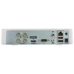 O DS-7104HGHI-M1 simplifica a instalação de sistemas com áudio, suportando a transmissão de áudio por meio do cabo coaxial (para câmeras compatíveis). O dispositivo conta com saídas de vídeo HDMI e VGA simultâneas, interface de rede para acesso remoto via Hik-Connect e espaço para instalação de um disco rígido SATA de até 4 TB, oferecendo uma solução completa em um chassi compacto.