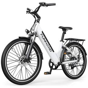 CONFORTO E SEGURANÇA PERSONALIZADOS: O guidão e o selim aprimorados permitem que o ciclista ajuste a altura do guidão e do assento para o máximo conforto. A bicicleta elétrica Funhang com design de quadro passante é ideal para ciclistas adultos, mulheres e homens, de 1,60 a 1,80 m de altura. A carga máxima é de 136 kg. Equipada com garfo de suspensão dianteira para reduzir solavancos, freios a disco duplos para fornecer força de frenagem potente e um farol brilhante que ilumina a estrada à frente para garantir a máxima segurança e conforto.
