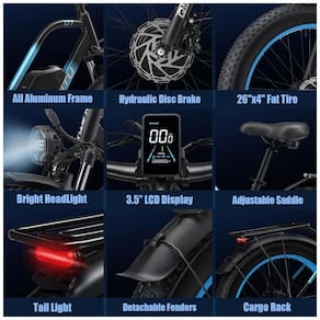 3. Design de e-bike todo-terreno e pneus largos de 10 cm. Quadro de e-bike em alumínio de nível aeronáutico com suspensão dianteira. Pneus de 10 cm à prova de furos suportam estradas molhadas/de cascalho, suportando ciclistas de 136 kg.