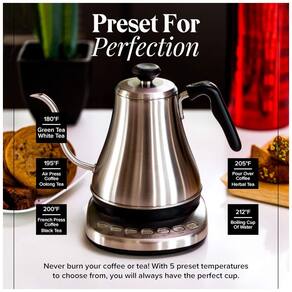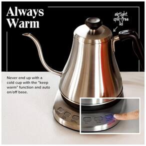 Chaleira elétrica de aço inoxidável com desligamento automático e capacidade de 1 litro.Características