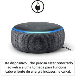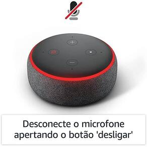 Echo Dot 3 Geração Smart Speaker com Alexa Assistente Preto Echo Dot 3 Geração Smart Speaker com Alexa Assistente Preto O Echo Dot é o smart speaker de maior sucesso. Controlado por voz com a Alexa, ele é perfeito para qualquer ambiente. Você pode pedir músicas, notícias, informações e muito mais. Além de ligar para amigos e familiares e controlar dispositivos compatíveis de casa inteligente com sua voz. Com 4 microfones de longo alcance, a Alexa ouve você do outro lado do cômodo. E com dispositivos Echo compatíveis em diferentes cômodos, você pode ouvir música em toda a sua casa. Use sua voz para acender as luzes, trancar as portas e muito mais com dispositivos de casa inteligente compatíveis. Tamanho: 43 mm x 99 mm x 99 mmPeso: 300 gramasConectividade: wifi Saída de áudio: Estéreo de 3,5 mm para uso com alto-falantes externos não incluso Fonte de energia: Bivolt 15W Inclusos na caixa: Echo Dot, carregador de energia bivolt 15W e Guia de início rápido. Homologação Anatel: 060792000160
