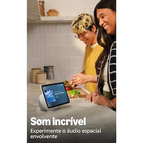 CHAMADAS DE VÍDEO NÍTIDAS Chamadas de vídeo com suas pessoas queridas serão mais reais graças à câmera centralizada, com enquadramento automático, zoom de 3,3x e tecnologia de redução de ruído. Use o "vídeo ao vivo" para verificar sua família, pets e muito mais enquanto estiver fora.