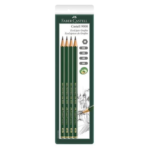 O ecolápis grafite castell 9000 é ideal para uso técnico, artístico, esboços e escrita em geral. O castell 9000 está disponível em 10 graduações: mais firme e sutil 2h, h, hb, b, 2b, 3b, 4b, 5b, 6b, 8b mais macio e escuro . O ecolápis possui formato sextavado com acabamento especial.