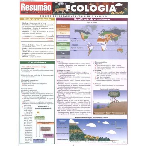 A relação dos organismos com o meio ambiente: níveis de organização e o ecossistema. Classificação de ecossistemas. Estabilidade de ecossistemas. Fluxo de energia em ecossistemas. Captação de energia. Cadeias e teias alimentares. Ciclo dos nutrientes nos ecossistemas: ciclo do carbono, ciclo da água, ciclo do nitrogênio, ciclo do fósforo, ciclo do enxofre. Ciclo dos nutrientes em florestas tropicais, em florestas temperadas, nos campos, nas tundras, nos desertos e nos oceanos. Dinâmica da população nas comunidades. Estrutura