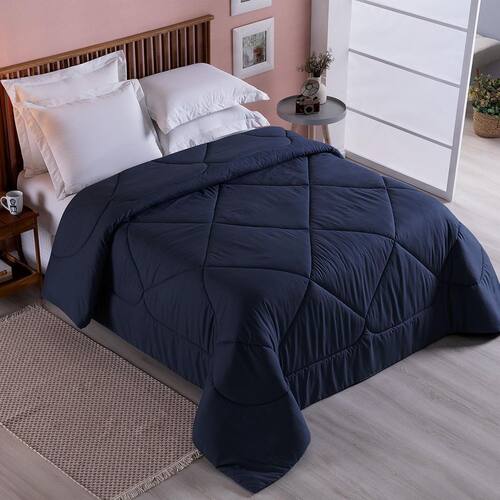 Edredom 1 Peça QUEEN Percal 200 Fios Unique Azul Marinho Conheça o conforto e aconchego que somente um edredom fofinho como o Unique pode te proporcionar. O edredom Unique tamanho queen é dupla face fabricado os dois lados com tecido percal 200 fios 100% poliéster na cor azul marinho e possui desenho pantografado costurado com linha em toda sua extensão que dá mais beleza para a peça além de não permitir que a manta de enchimento interno embole ou se danifique durante a lavagem aumentando assim a vida útil do seu produto. Os tecidos utilizados na fabricação de nossos possuem de qualidade e não desbotam nem formam bolinhas após a lavagem e o uso graças a tecnologia antipilling. Saiba alguns motivos para não perder a oportunidade de ter esse produto na sua casa: Conforto - o tecido percal 200% fios de poliéster é extremamente macio ao toque e deixará sua cama muito mais aconchegante. Tamanho Ideal - nosso edredom Unique no tamanho queen possui as medidas 2,60m x 2,40m que concede um caimento perfeito e espaçoso em camas queen ou casal que possuam box abaixo do colchão. Custo Benefício - um produto de alta qualidade e ótimo acabamento mas com preço justo e que cabe no seu bolso. de Satisfação - nossos produtos são de fabricação própria no Brasil com mão de obra responsável e atenção aos detalhes. Conteúdo da embalagem: 01 Edredom dupla face pantografado 2,60m x 2,40m Composição: Tecido Superior e Forro: Hipercal 200 Fios 100% Poliéster Manta enchimento interno : 100% Poliéster de 100g/m Marca: Não Informado Ean: 7890915233388
