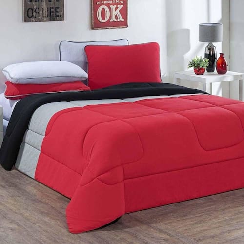 Edredom 100% Algodão Urbano 1 Peça Queen Vermelho-mescla-preto