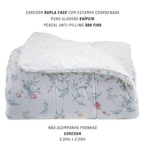 Feito em percal 300 fios de puro algodão egípcio, proporciona toque acetinado, aconchego único e durabilidade superior. A estampa romântica com padrões ascendentes adiciona movimento e profundidade à cama, valorizando cada detalhe do ambiente.